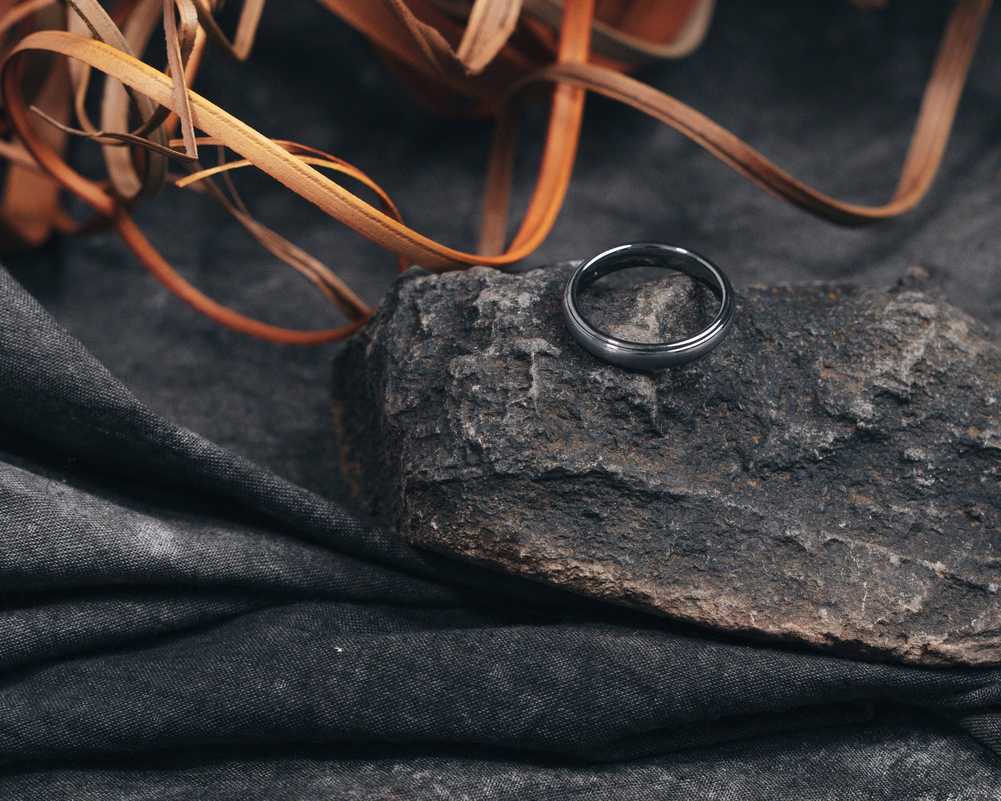 Thobo Ring: 4mm grey tungsten band—minimalist and long-wearing